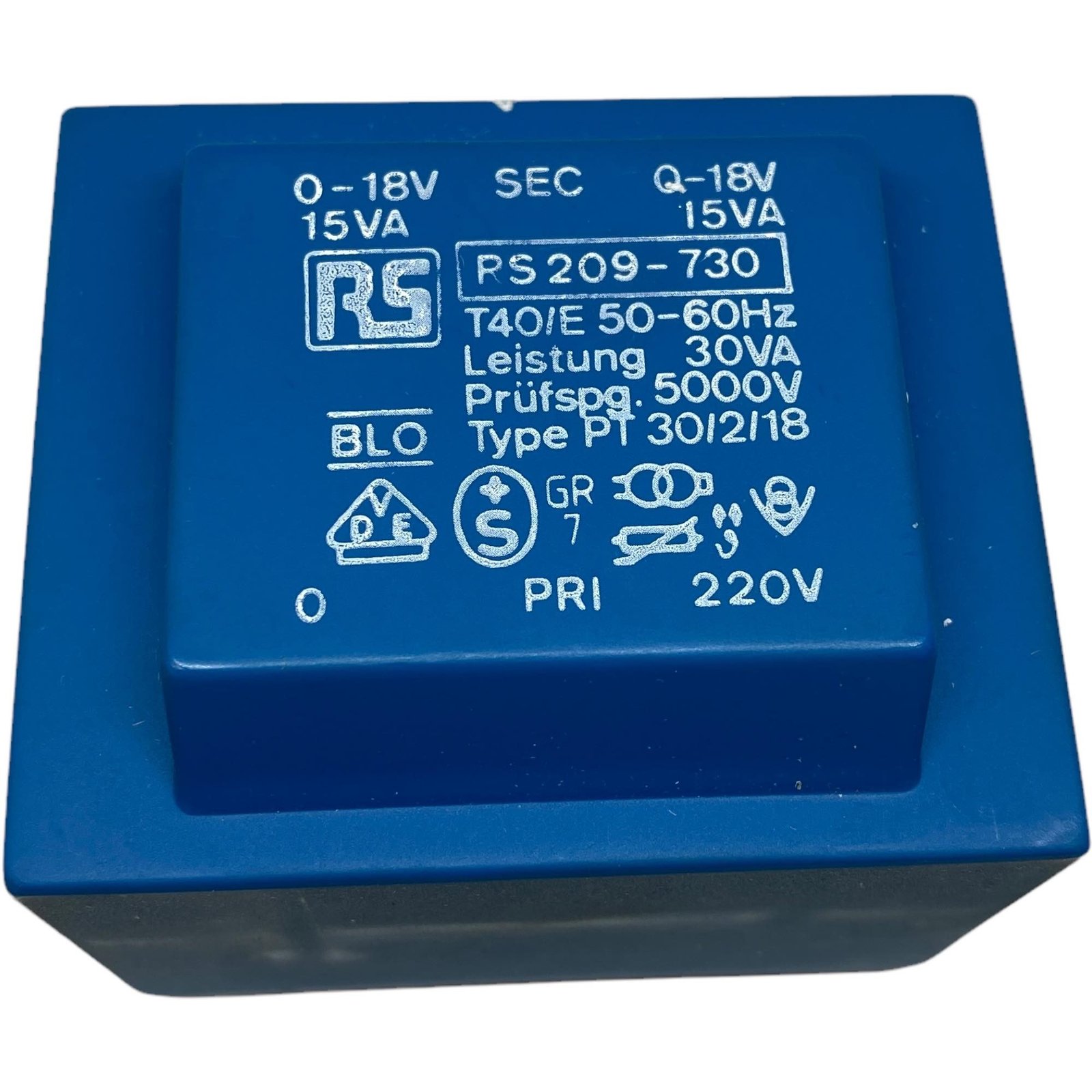 PT30/2/18 Safety Isolation Transformer IN:1x220Vac OUT:2x18V/15VA