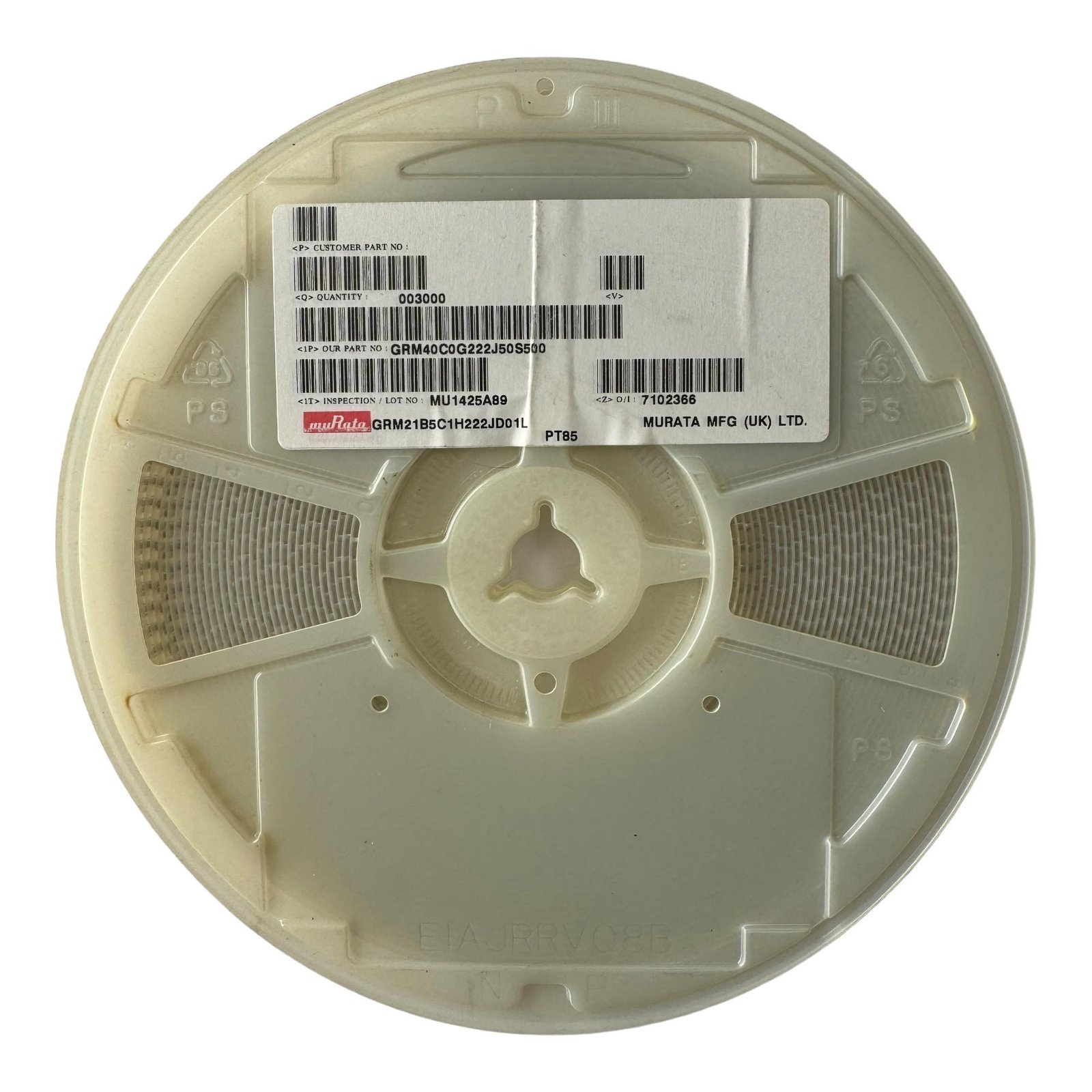 GRM40C0G222J50S500 Murata Ceramic Capacitors SMD 0805 2.2 nf 50V 5% QTY:3000