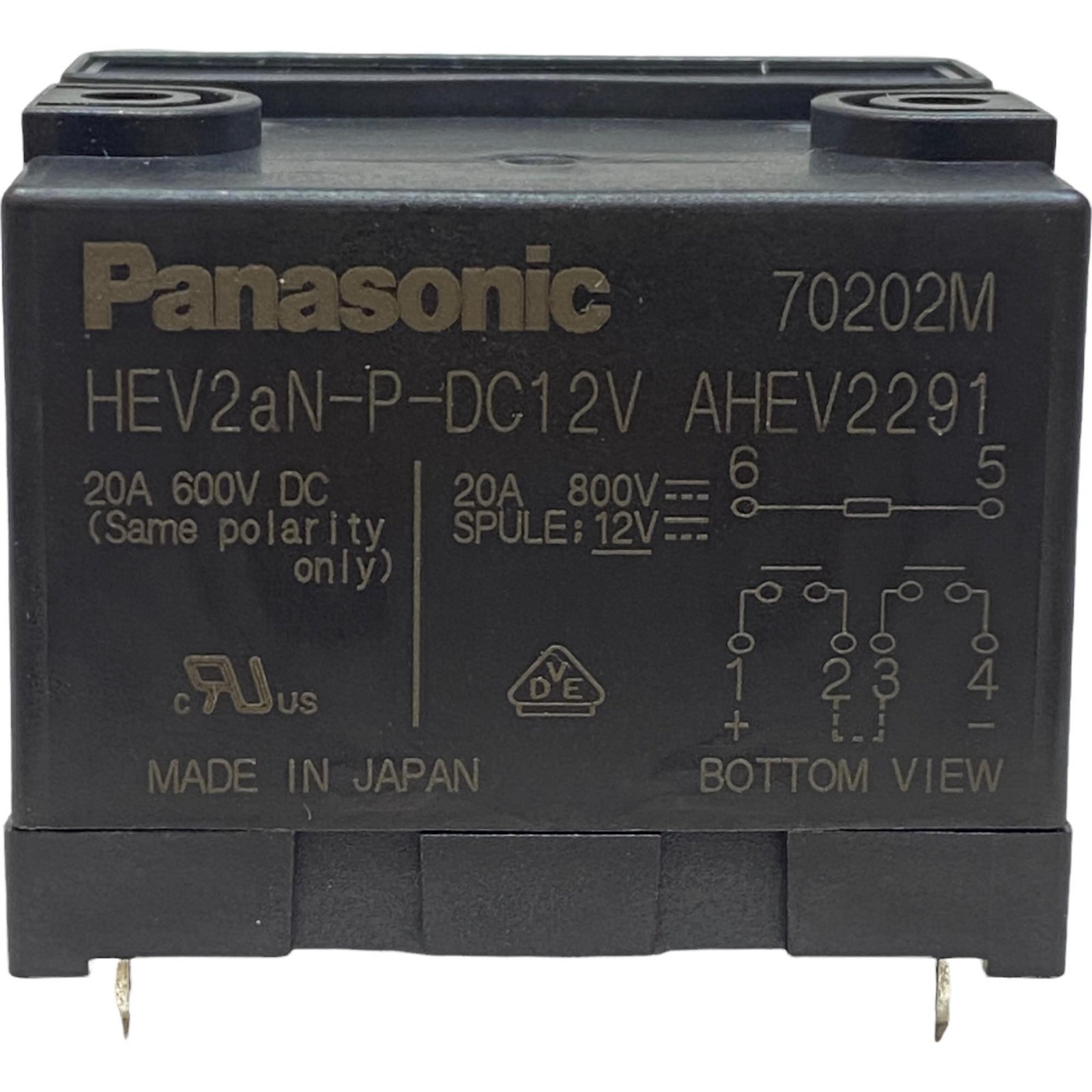 HEV2AN-P-DC12V Panasonic DPST Power Relay 12Vdc 20A