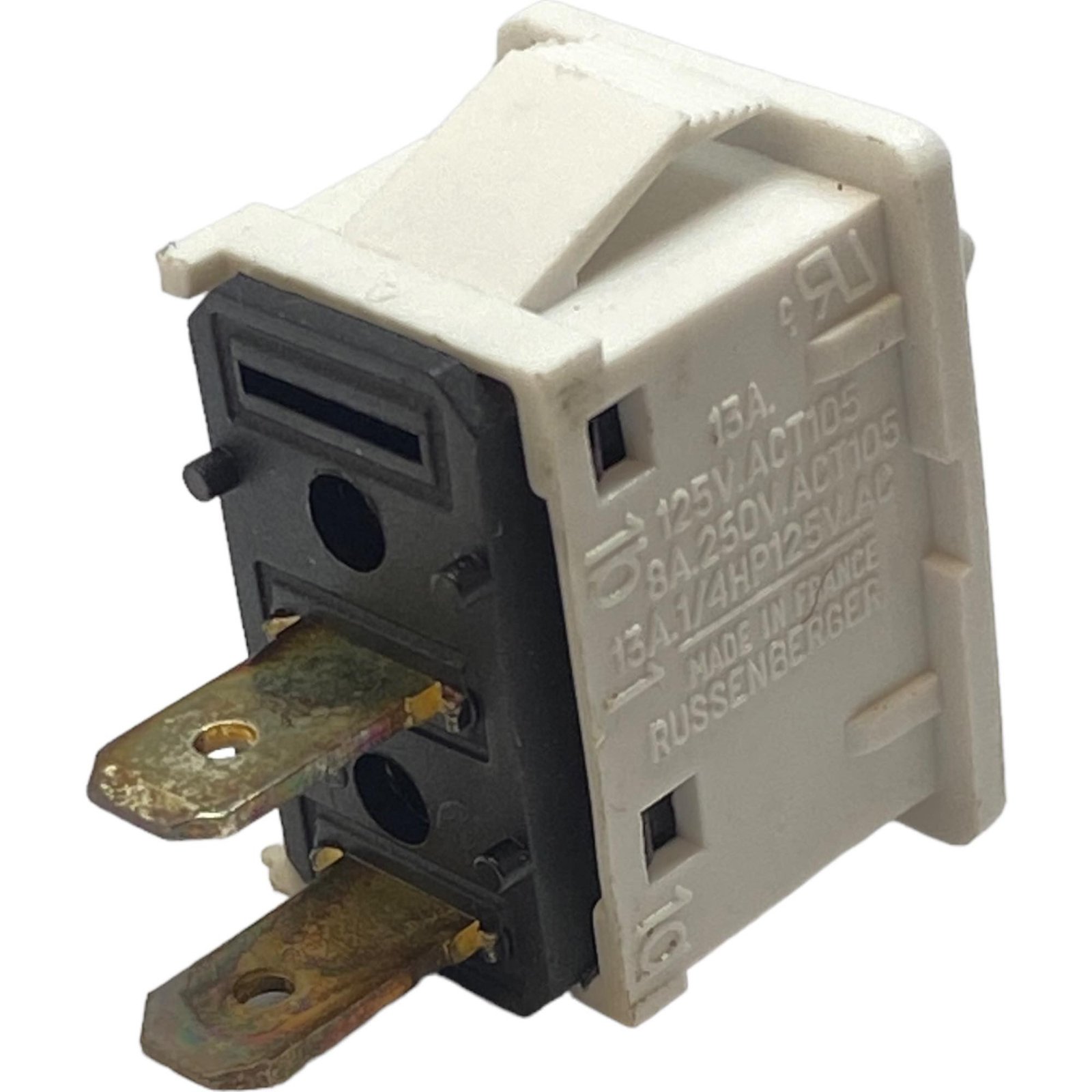 SPST Russenburger White Rocker Switch On-Off 15A/125Vac 8A/250Vac