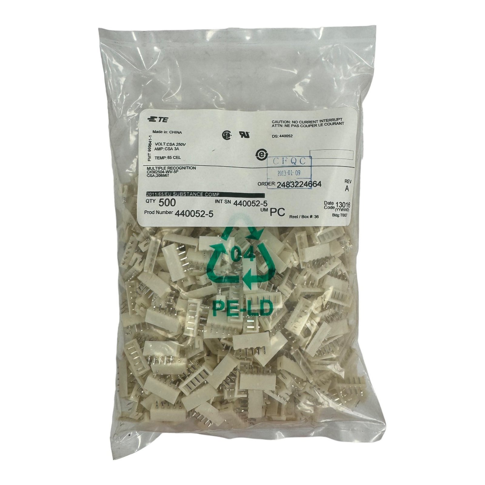 440052-5 Tyco Connector Headers 2.5mm HDR 5pos QTY:500